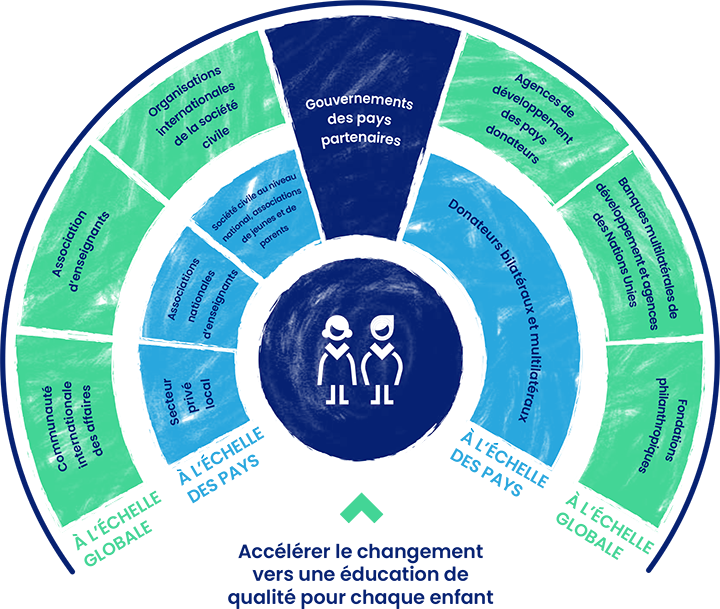 Le GPE rassemble tous les partenaires investis dans l'éducation - pays à faible revenu, bailleurs de fonds, organisations internationales, société civile, y compris les organisations de jeunes et d'enseignants, le secteur privé et les fondations privées - pour transformer les systèmes éducatifs en se concentrant sur les régions et les enfants ayant les plus grands besoins.